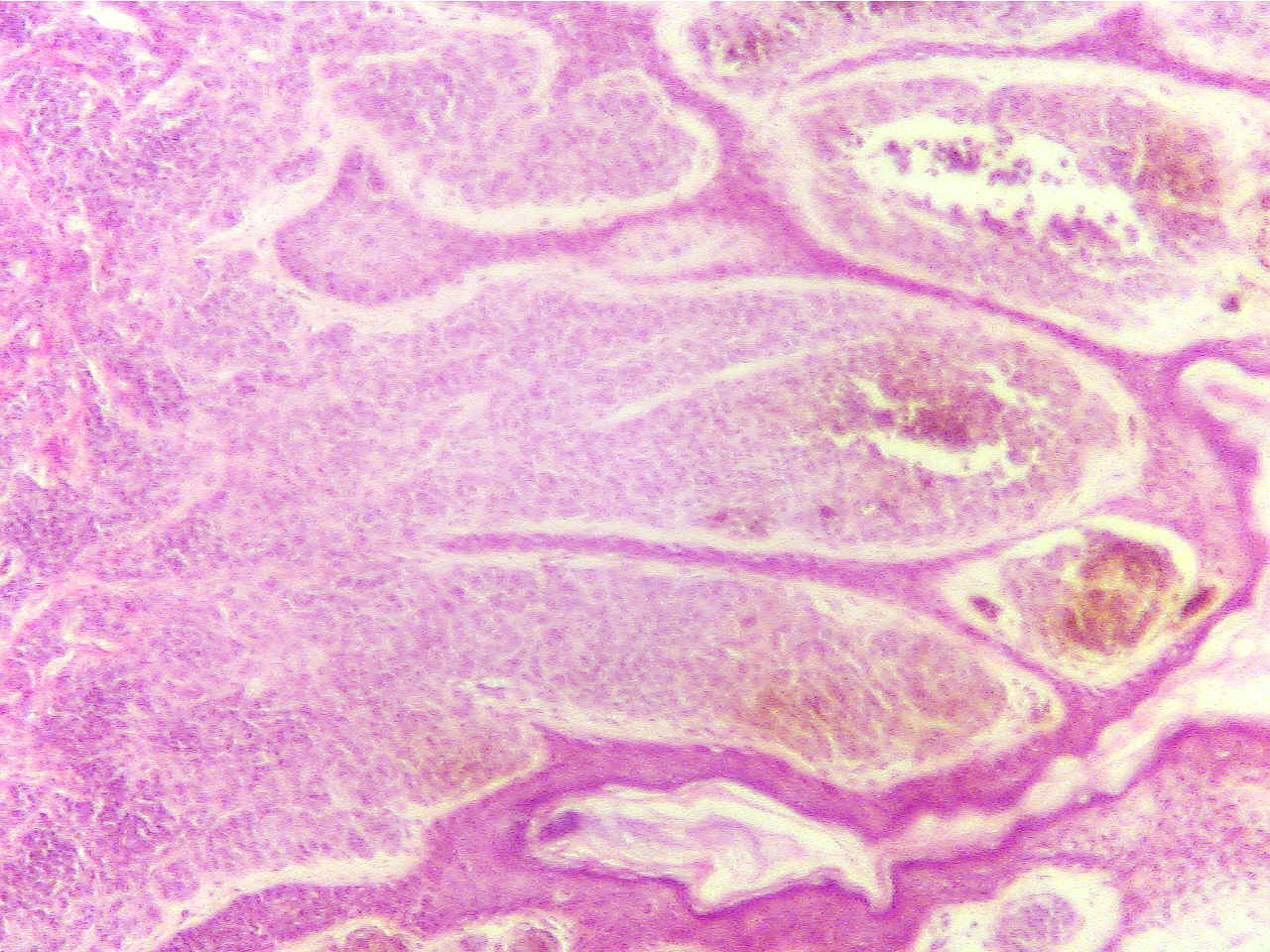proliferation. The epidermis is very thick and contains excessive accumulations
