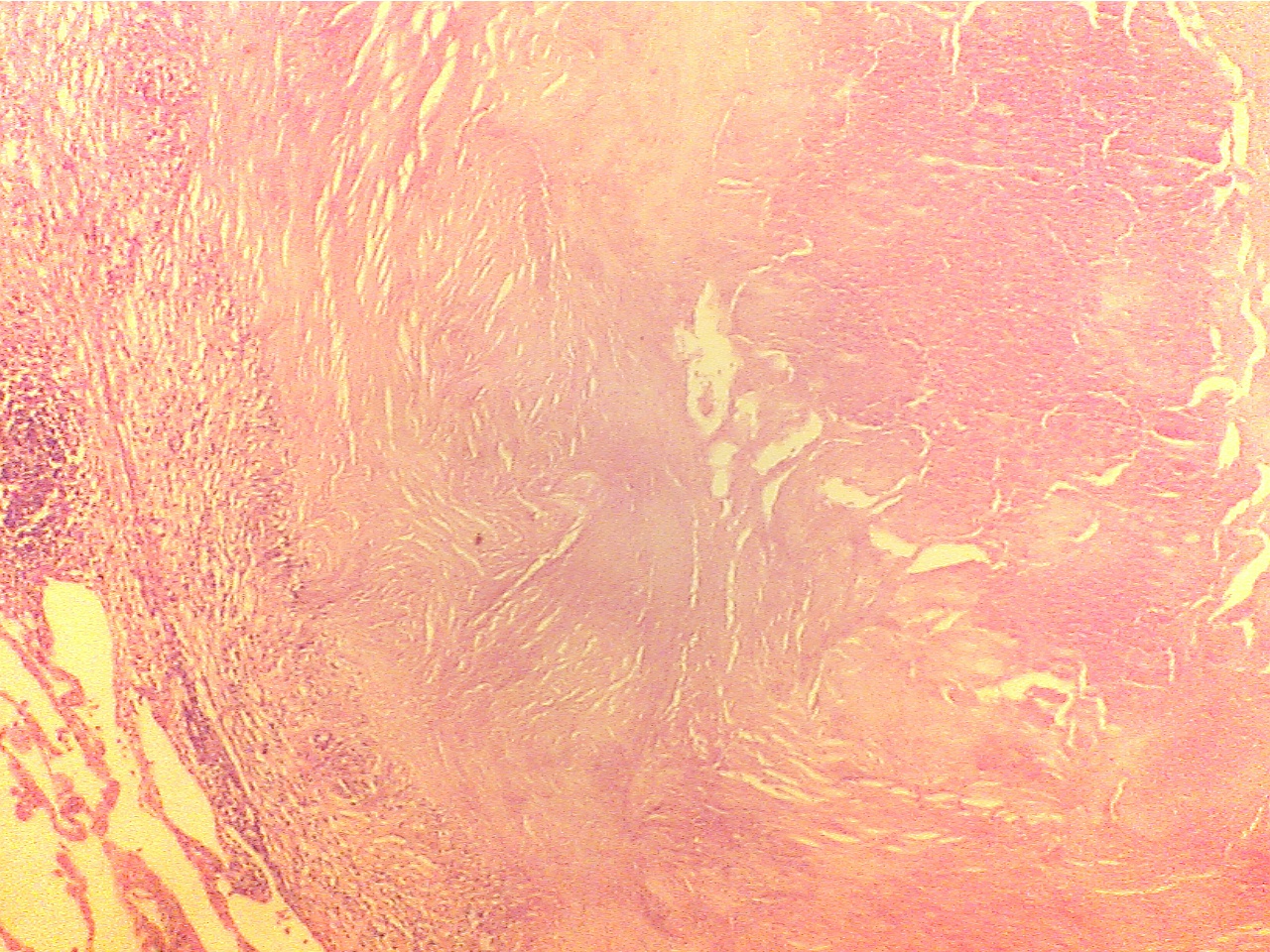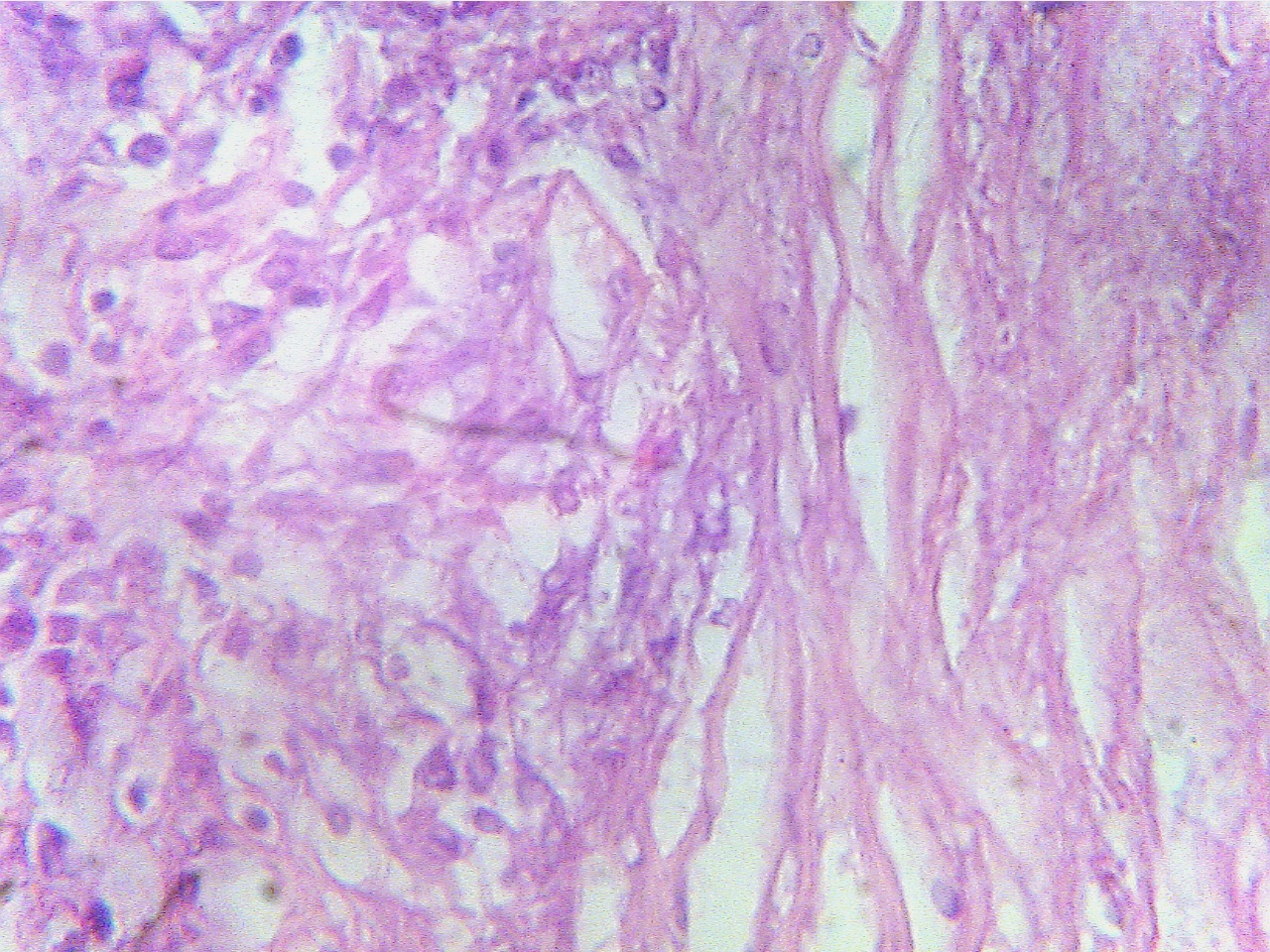 Macrophages (left), fibrous capsule