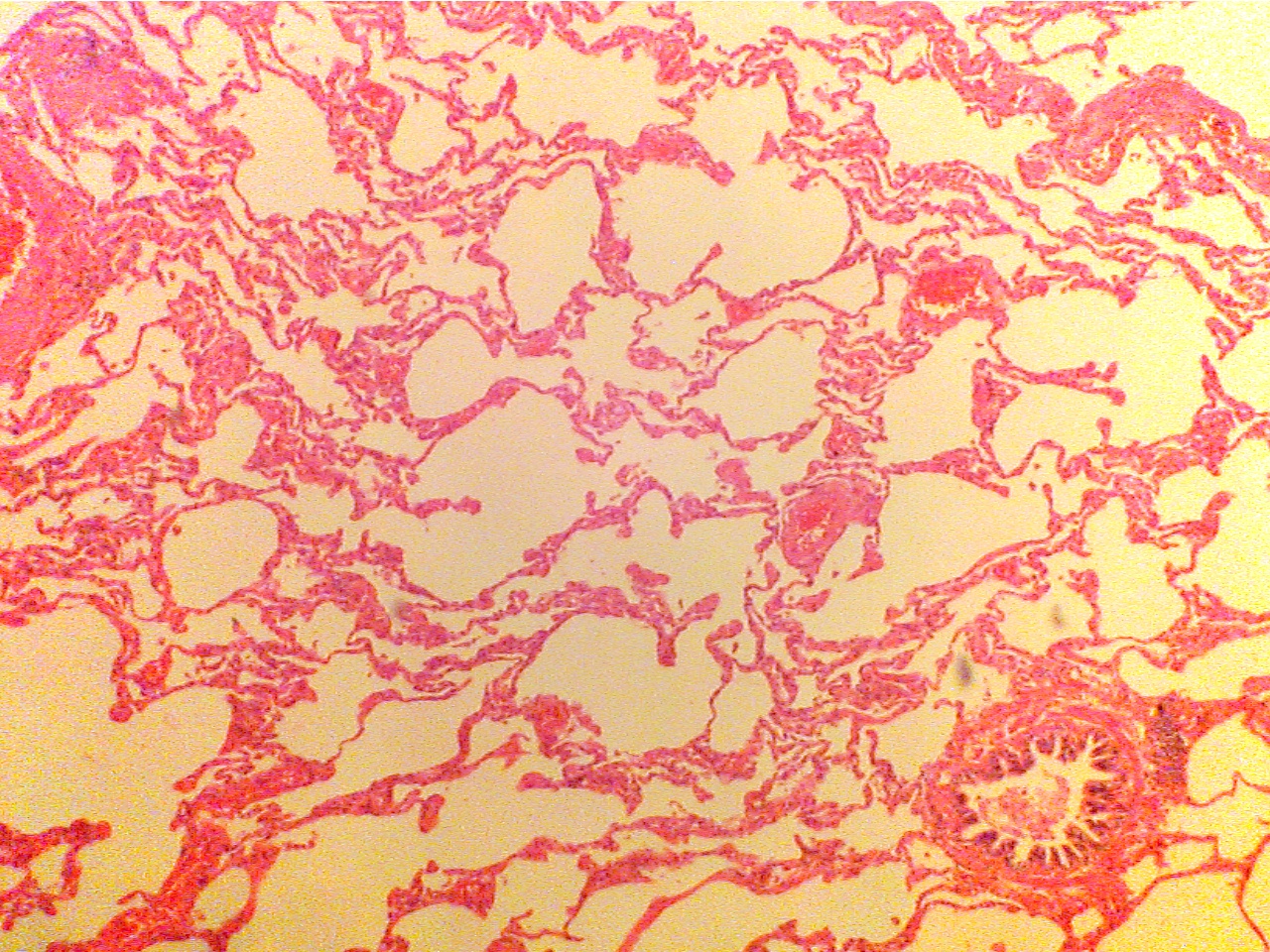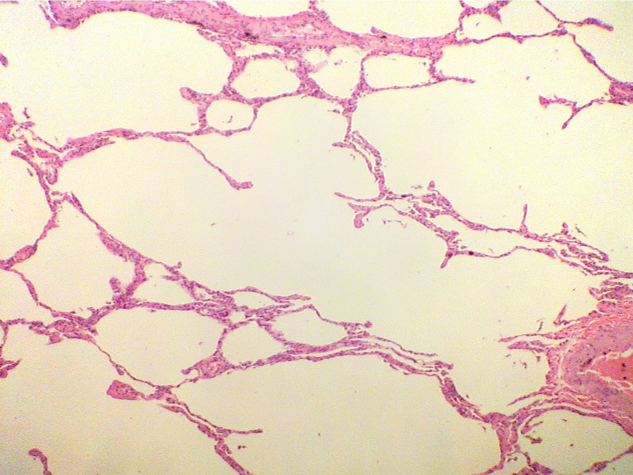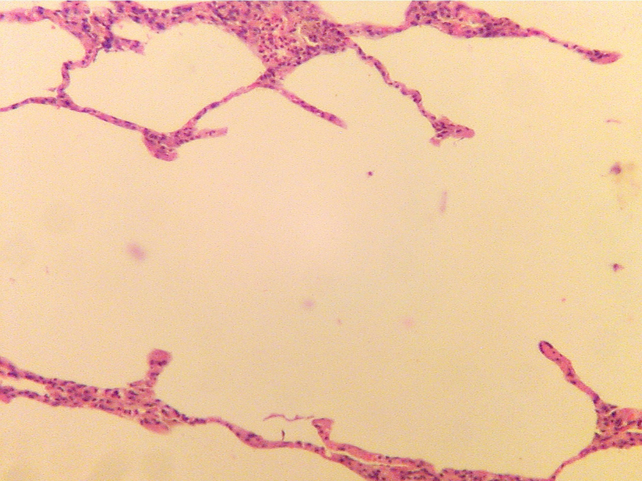 Note that the alveoli (air spaces) in this slide are much larger than