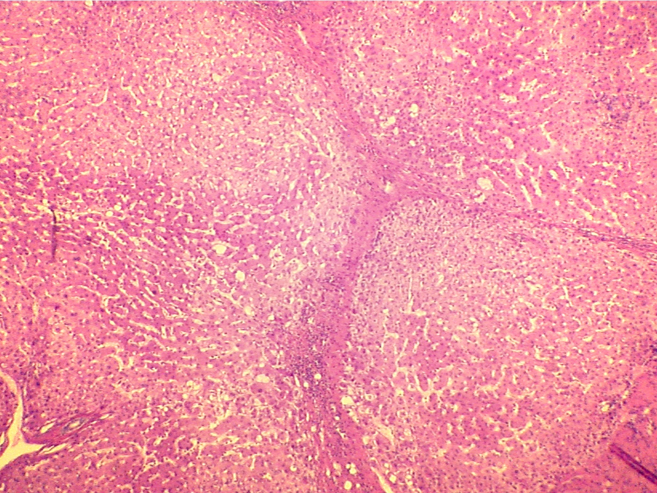 tissue. On the slide of cirrhosis of the liver, notice bands of fibrous
